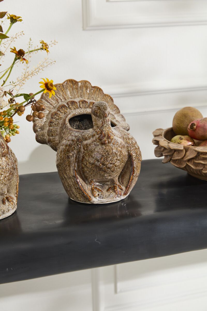 Description Bring timeless charm to your harvest décor with the ceramic Wild Turkey Pot, featuring...