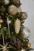 Decorate the Christmas tree with the Frosted Pinecone Ornament Collection, a nature inspired variety of sparkling pinecones in pink, gold, and bronze. Each colorway comes in two sizes has a shiny glass base, dusted in color coordinating glitter. These pinecones come with a metallic string and are perfect on the tree or styled as bowl fillers as festive tabletop decor.